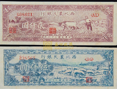 1947年西北農(nóng)民銀行貳仟圓、伍仟圓