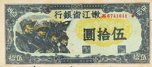 在抗戰(zhàn)勝利結(jié)束時,山東解放區(qū)已有極大發(fā)展,有12.5萬平方公里的面積,占山東總面積的92%,擁有2400萬人口,占山東總?cè)丝诘?0%。1948年10月,山東的北海銀行幣與華北的冀南銀行幣、晉察冀邊區(qū)幣固定比價互相流通,1948年11月16日起,北海銀行幣與華中銀行幣等價流通。這一時期的北海銀行幣均不加蓋地名,便于山東以外的地區(qū)流通。1948年12月1日,華北銀行、北海銀行、西北農(nóng)民銀行合并,在石家莊成立中國人民銀行,但因工作的需要,北海銀行繼續(xù)營業(yè),1949年1月底開始回收北海銀行幣,同年11月1日改稱中國人民銀行山東分行,至此,北海銀行完成了它的歷史使命宣告結(jié)束。