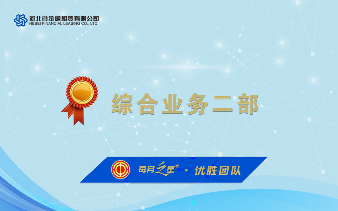 6月份,河北金租全員朝著半年經(jīng)營(yíng)目標(biāo)努力奮進(jìn),掀起實(shí)干苦干、抓細(xì)抓實(shí)的熱潮。工會(huì)委員會(huì)評(píng)選出本月“每月之星”,請(qǐng)優(yōu)勝團(tuán)隊(duì)和優(yōu)秀員工珍惜榮譽(yù),再立新功,請(qǐng)全體干部員工以先進(jìn)為榜樣,再接再厲,再創(chuàng)佳績(jī)。