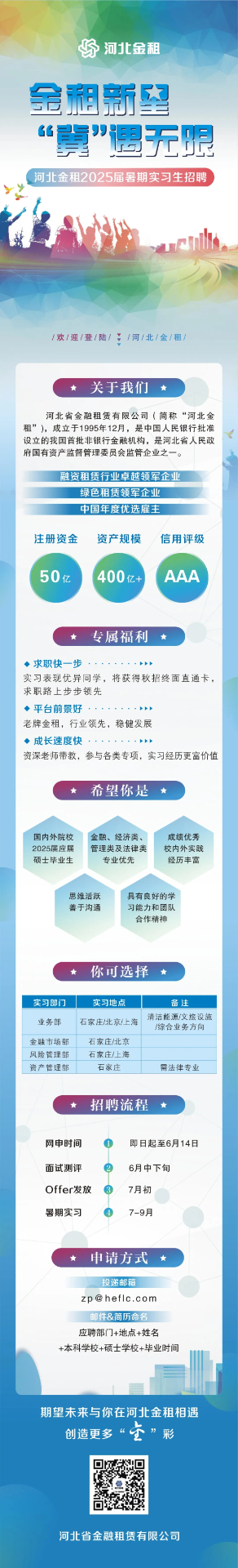 河北金租2025屆暑期實(shí)習(xí)生招聘 | 金租新星 “冀”遇無限