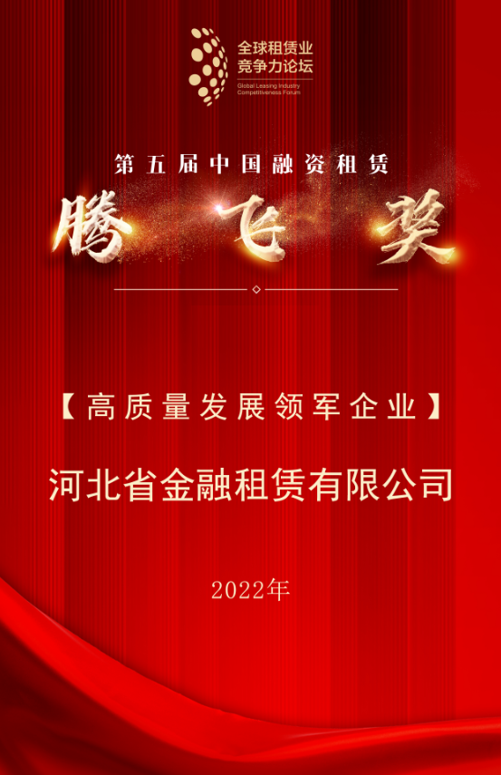 日前,第九屆全球租賃業(yè)競(jìng)爭(zhēng)力論壇年度峰會(huì)圓滿召開(kāi),河北省金融租賃有限公司(以下簡(jiǎn)稱(chēng)“河北金租”或“公司”)再度攬下中國(guó)融資租賃“騰飛獎(jiǎng)”,榮獲“高質(zhì)量發(fā)展領(lǐng)軍企業(yè)”榮譽(yù)。全球租賃業(yè)競(jìng)爭(zhēng)力論壇峰會(huì)是一年一度的世界級(jí)租賃行業(yè)峰…